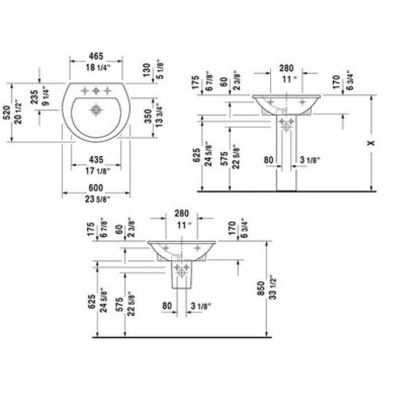 Схема с размерами керамической раковины Duravit Darling New (2621600000)