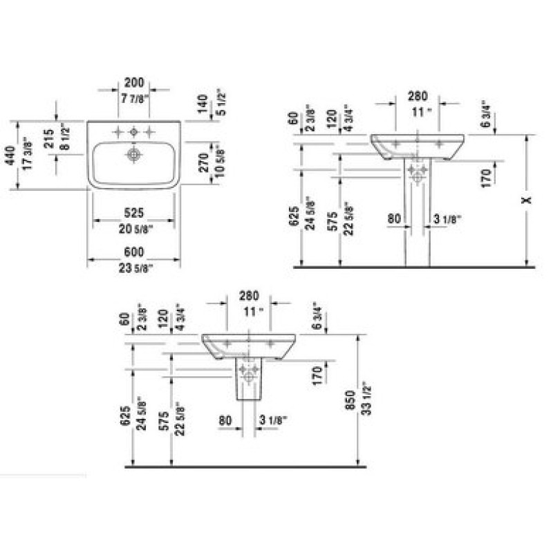 Схема с размерами керамической раковины Duravit DuraStyle (2319600000)