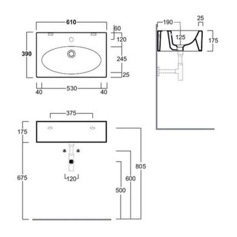 Описание керамической раковины Simas LFT Spazio (LFT 54) размер 610x390х175 мм вес 20 кг цвет - белый материал - керамика намеченное центральное отверстие под смеситель с переливом установка: подвесная, накладная на тум...