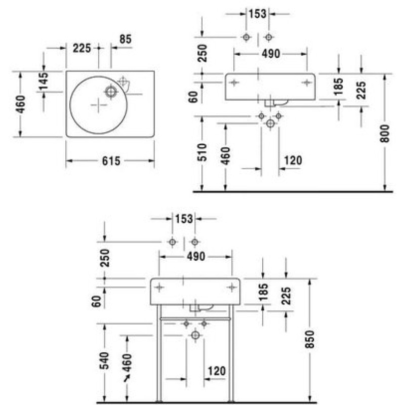 Схема с размерами керамической раковины Duravit Scola (0684600000)