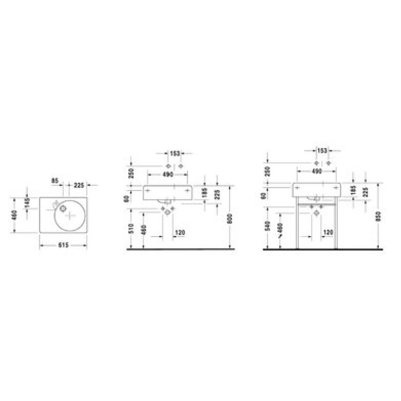 Схема с размерами керамической раковины Duravit Scola (0685600000)