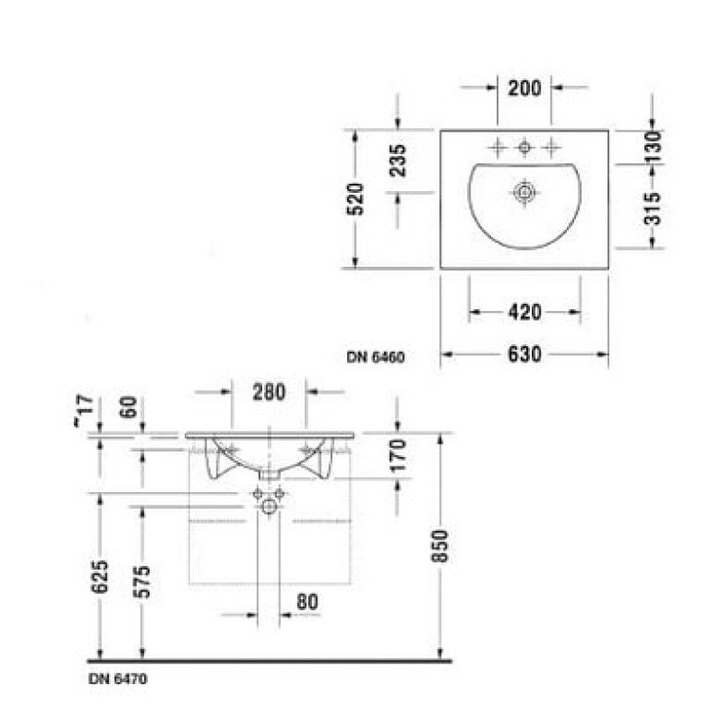 Схема с размерами керамической раковины Duravit Darling New (0499630000)