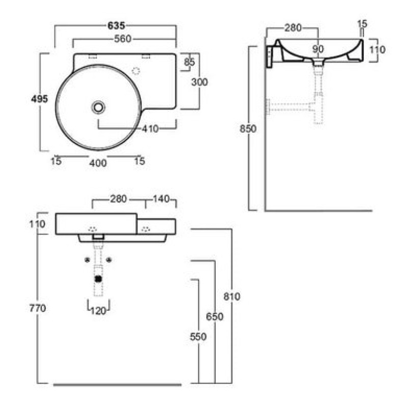 Схема с размерами керамической раковины Simas Flow (FL 04)