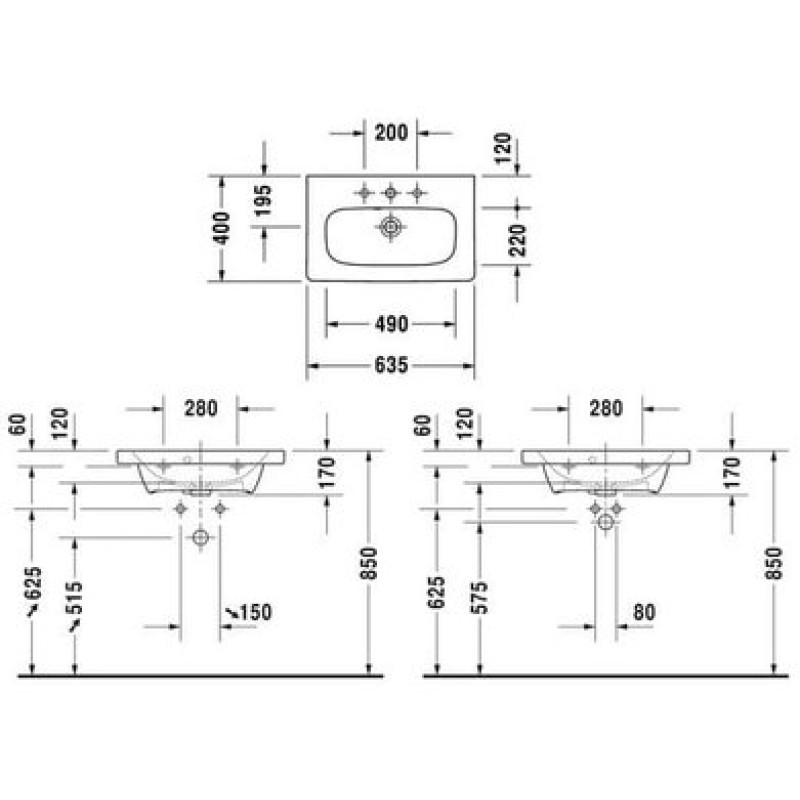 Схема с размерами керамической раковины Duravit DuraStyle (2337630000)