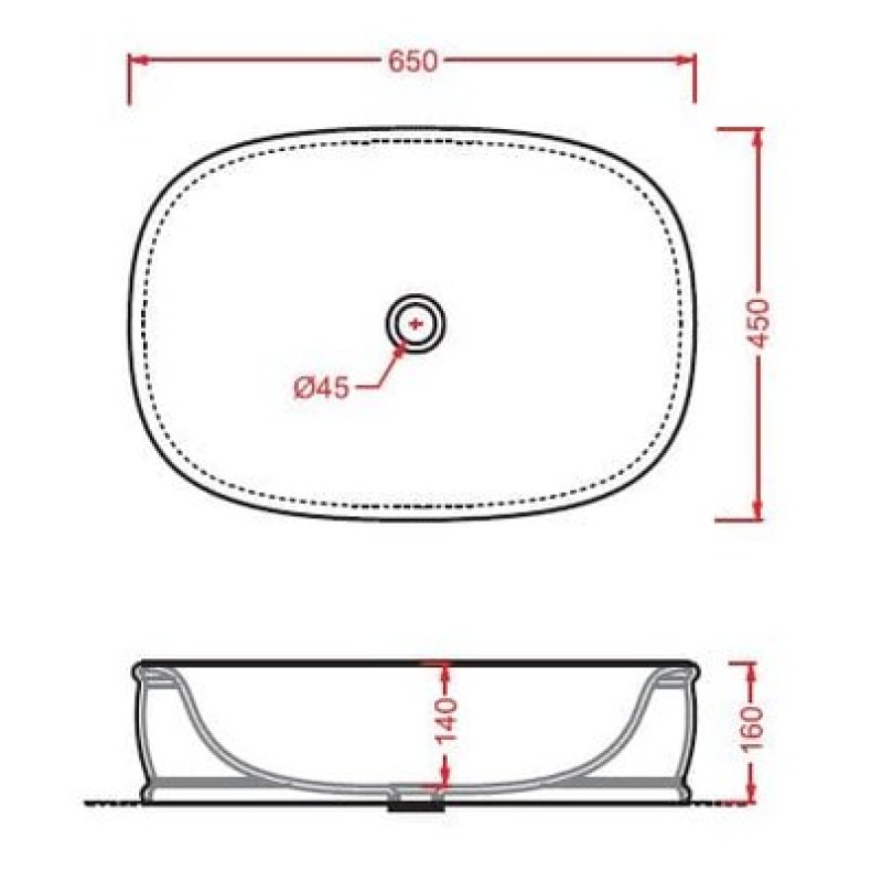Схема с размерами керамической раковины Artceram Azuley (AZL002 03; 00)