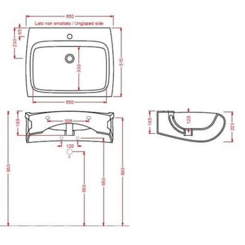 Схема с размерами керамической раковины Artceram Hi-Line (HIL004 01; 00)