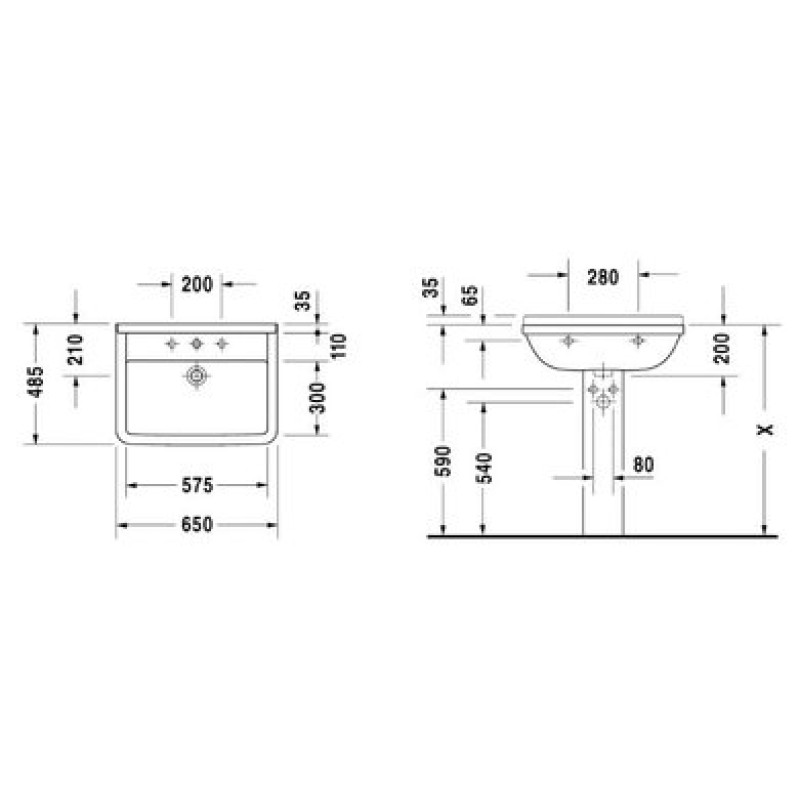 Схема с размерами керамической раковины Duravit Starck 3 (0300650000)