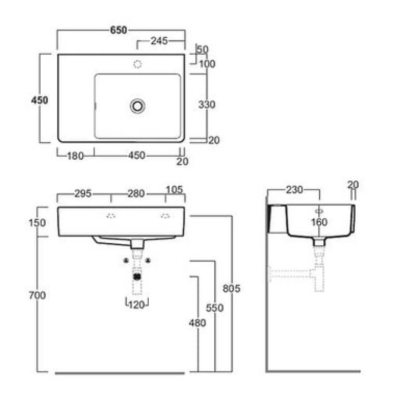 Описание керамической раковины Simas Top-Lavabi (QU65D) размер 650x450х150 мм вес 19,5 кг цвет - белый материал - керамика центральное отверстие под смеситель с переливом установка: подвесная с плоскостью под смеситель ...