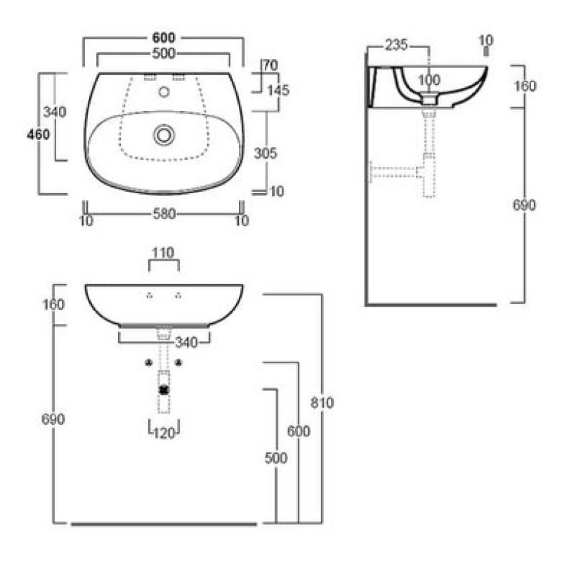 Схема с размерами керамической раковины Simas Vignoni (VI 10)