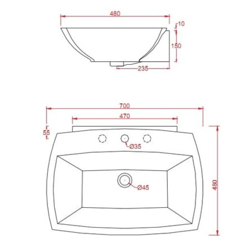 Схема с размерами керамической раковины Artceram Jazz (JZL004 03; 00)