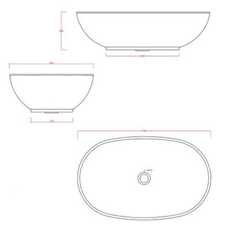 Схема с размерами керамической раковины Artceram La Ciotola (LCL002 01; 00)