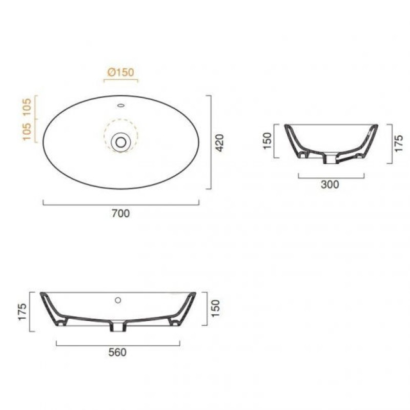 Керамическая раковина 70 см Catalano Gold&Silver, gold/white — характеристики та опис