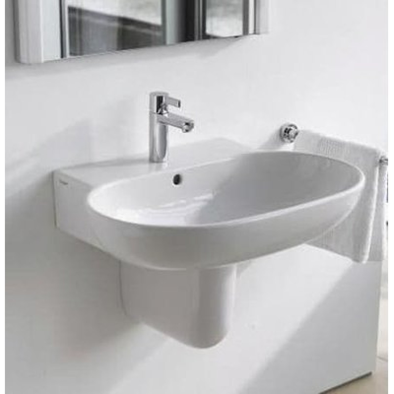 Описание керамической раковины Duravit Bathroom Foster (0419700000) размер 700x540х185 мм вес 19 кг цвет - белый материал - керамика с центральным отверстием под смеситель с переливом с плоскостью под смеситель включая ...