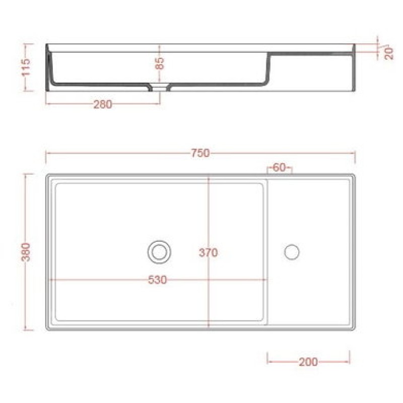 Схема с размерами керамической раковины Artceram Scalino (SCL004 01; 90)