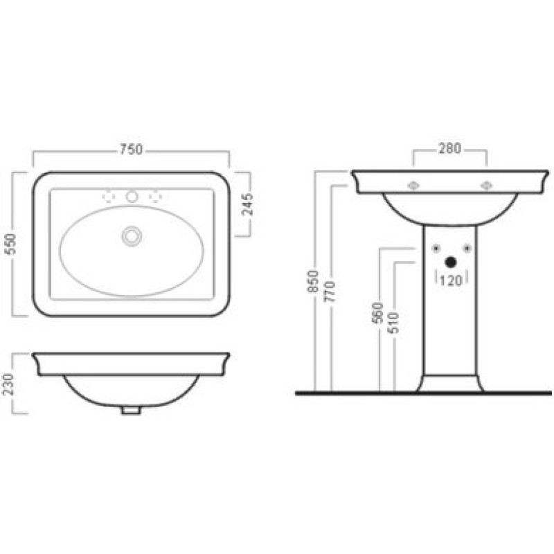 Схема с размерами керамической раковины Hatria Dolcevita (Y0EJ01)