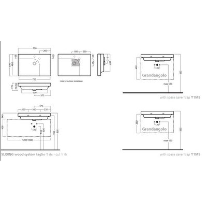 - комбинируется с керамическими правыми и левыми полками Grandangolo 50, вешалками для полотенец и сифоном