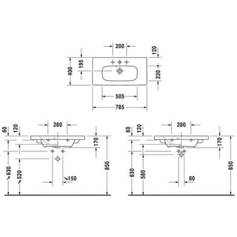 Схема с размерами керамической раковины Duravit DuraStyle (2337780000)