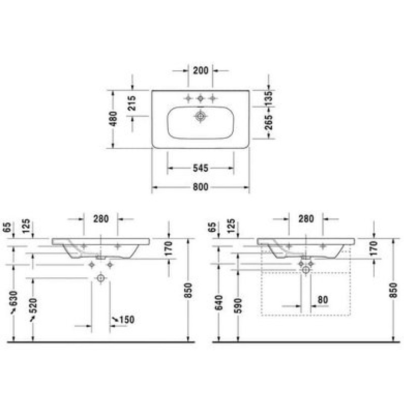 Схема с размерами керамической раковины Duravit DuraStyle (2320800000)