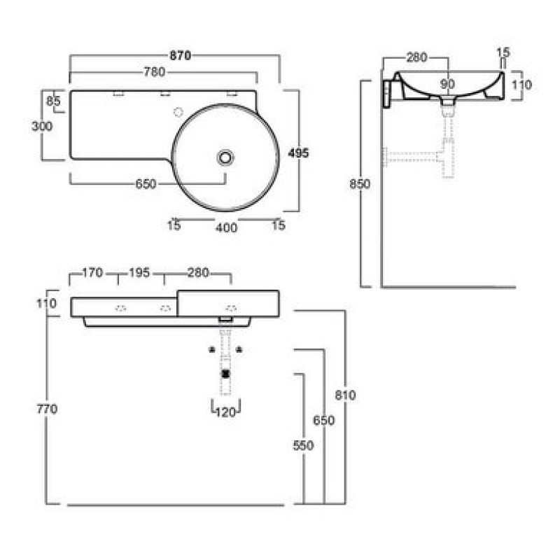 Схема с размерами керамической раковины Simas Flow (FL 05)