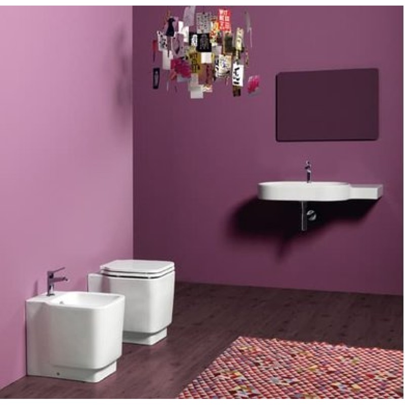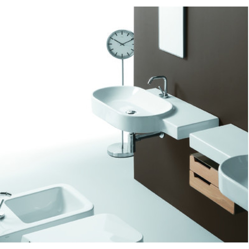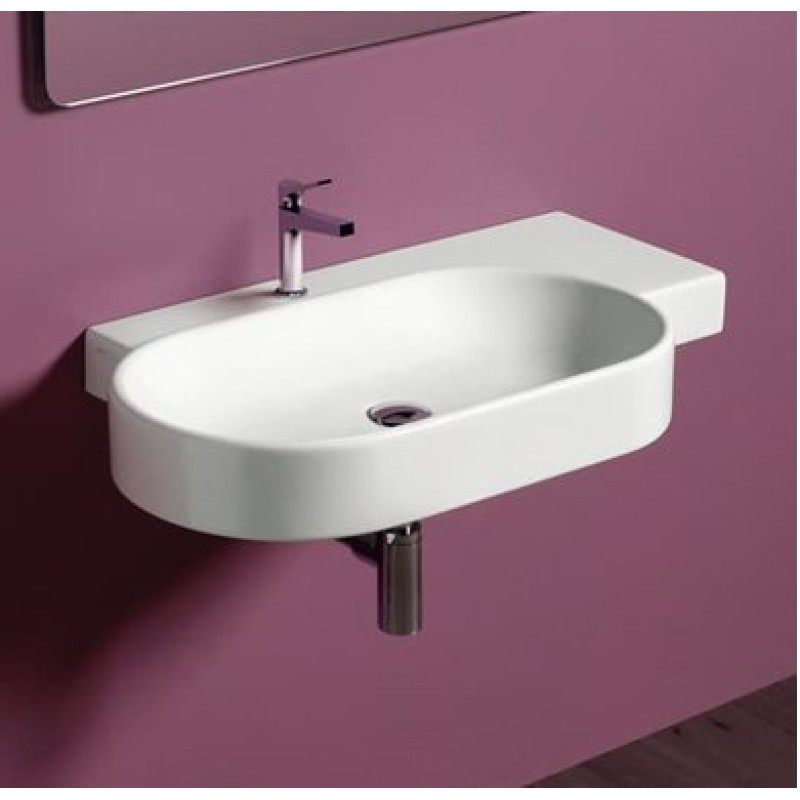 Описание керамической раковины Simas Flow (FL 23) размер 880x500х110 мм вес 20 кг цвет - белый материал - керамика намеченное центральное отверстие под смеситель без перелива установка: подвесная с плоскостью под смесит...