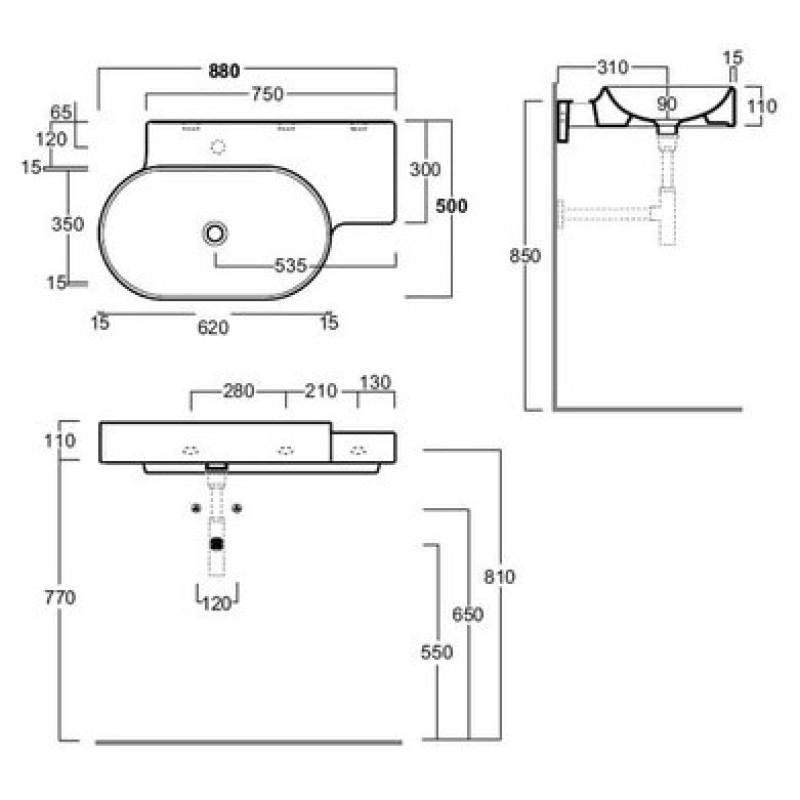Схема с размерами керамической раковины Simas Flow (FL 23)