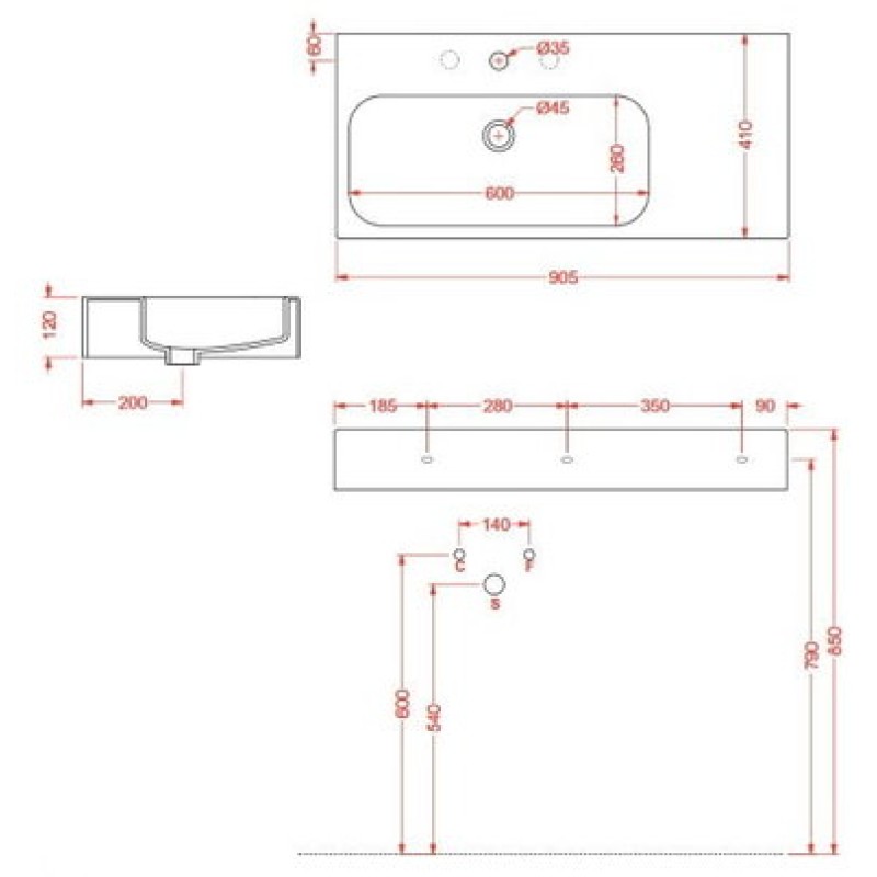 размер 905x410х120 мм