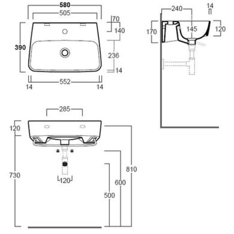 Схема с размерами керамической раковины Simas Degrade (DE 12)
