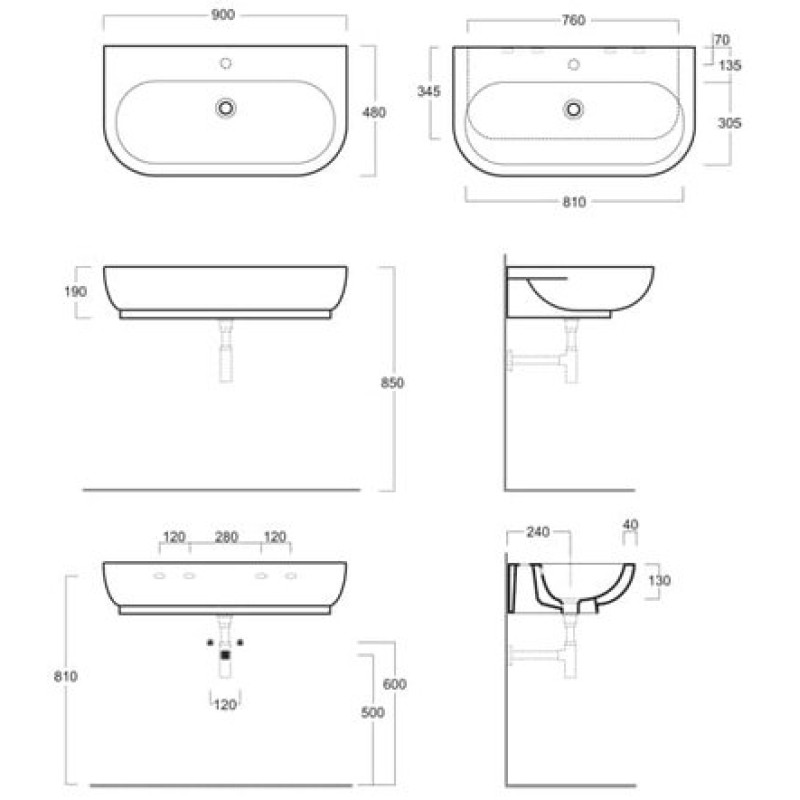 Описание керамической раковины Simas E-Line (EL 11) размер 900x480х130 мм вес 22 кг цвет - белый материал - керамика намеченное центральное отверстие под смеситель с переливом установка: подвесная с плоскостью под смеси...