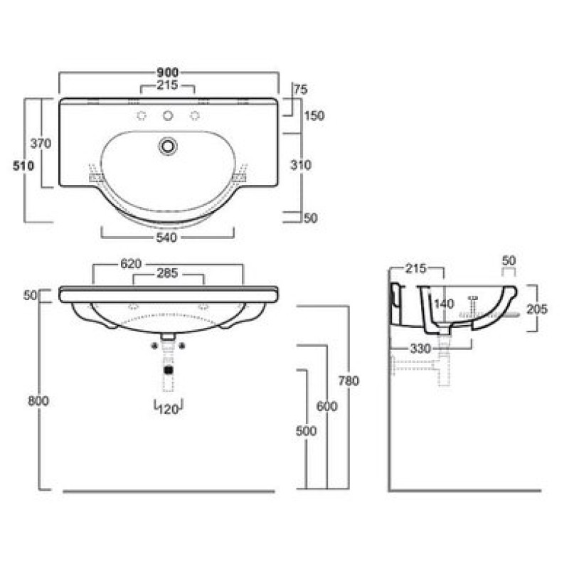 Описание керамической раковины Simas Top-Lavabi (TOP 62) размер 900x510х205 мм вес 22 кг цвет - белый материал - керамика центральное отверстие под смеситель 2 намеченных отверстия под смеситель с переливом установка: п...