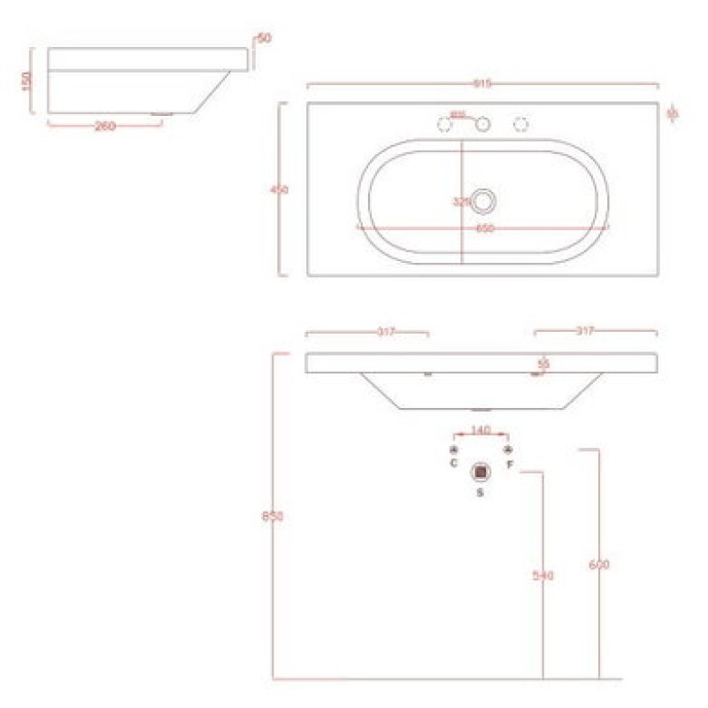Схема с размерами керамической раковины Artceram Blend (BLL005 01; 00)