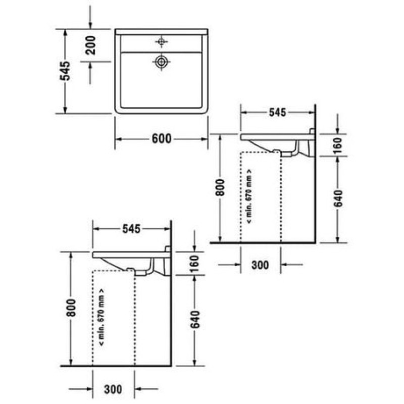 Схема с размерами керамической раковины Duravit Starck 3 (0312600000)