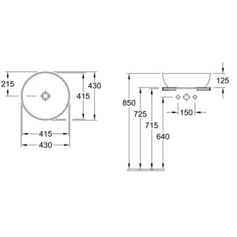 Схема с размерами керамической раковины Villeroy & Boch Artis 41794301