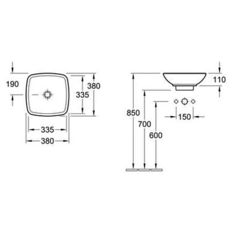 Схема с размерами керамической раковины Villeroy & Boch Loop&Friends 51490001