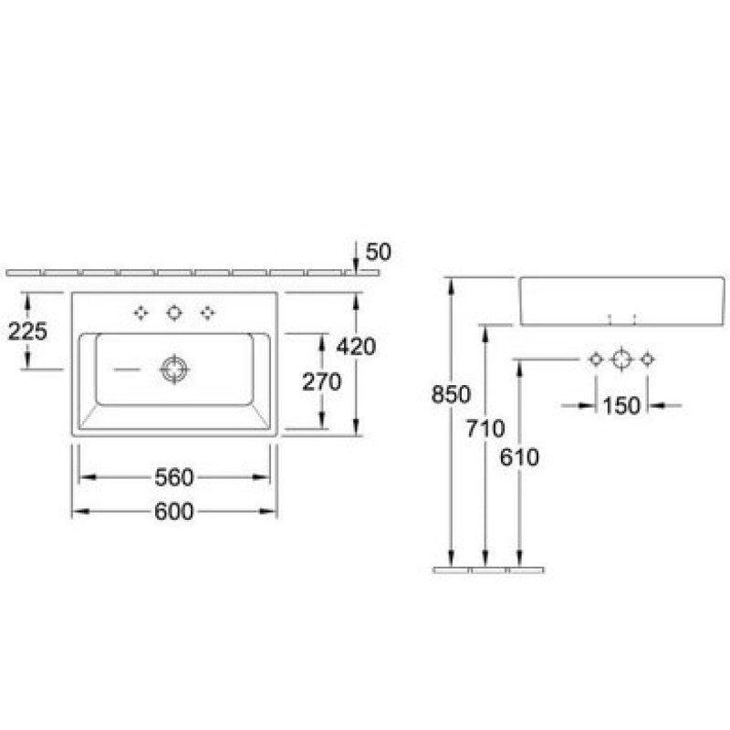 Схема с размерами керамической раковины Villeroy & Boch Memento 513560R1
