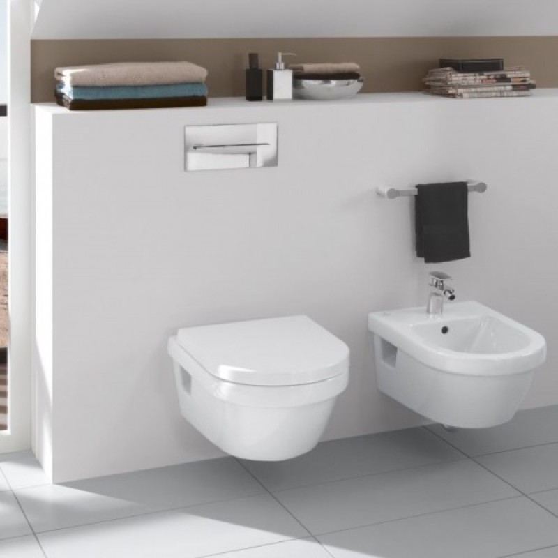 Комплект: Villeroy & Boch Architectura Direct Flush 5684HR01 унитаз подвесной 37*53 см, без ободка, с сидением soft-close (медленное закрывание), корпус унитаза плавно сужается к низу, не оставляя впадин для скоплени...