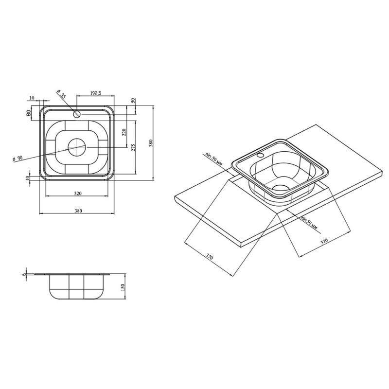 Кухонная мойка Lidz 3838 Satin 0,6 мм (LIDZ3838POL06) — характеристики та опис