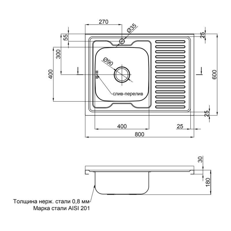 Толщина материала, мм: 0,8