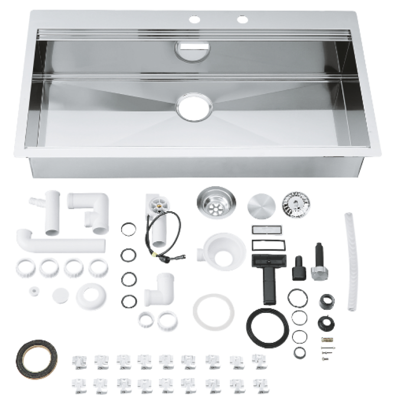 Приоритизируйте стиль и качество работы вместе с мойкой GROHE K800 из нержавеющей стали. Эта широкая мойка будет великолепно смотреться в любой современной кухне. Она была спроектирована для монтажа в один уровень со столешницей, а глубина чаши составляет 20 см, что делает мойку очень удобной и практичной. Сама чаша имеет острые углы и стильное основание с ганями напоминающими бриллиант, а автоматический мусоросборник с дистанционным управлением подразумевает, что вы можете вытащить пробку, не опуская свою руку в грязную воду.
