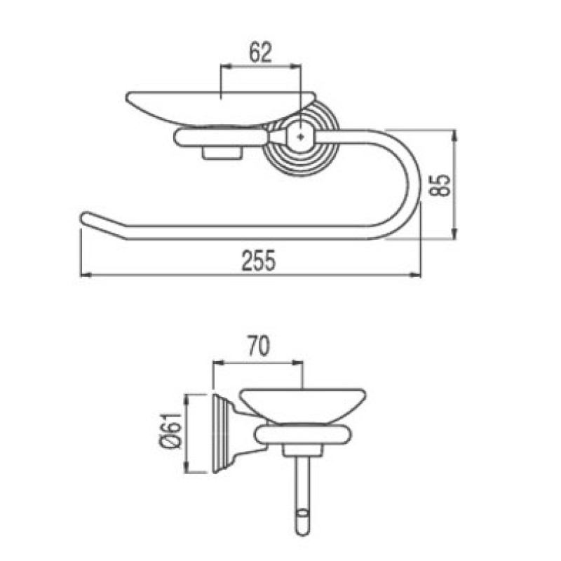 Описание мыльницы Tres Tres-clasic (12463611) настенный монтаж с полотенцедержателем цвет белый отделка - хром Чертеж с размерами мыльницы Tres Tres-clasic (12463611) ...