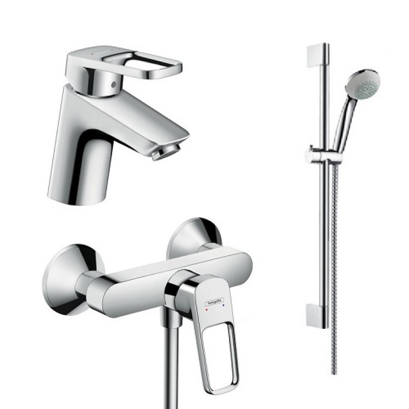 Hansgrohe Logis Loop Набор смесителей для душа, умывальник 70 (71150000+71247000+27728000): однорычажный смеситель для умывальника + однорычажный смеситель для душа + душевой набор (один режим лейки, диаметр лейки 85 мм)