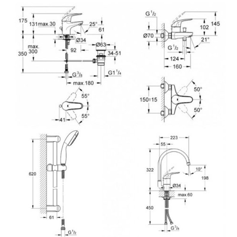 Набор смесителей для ванны и кухни Grohe Euroeco 123242K 4 в 1 — характеристики та опис
