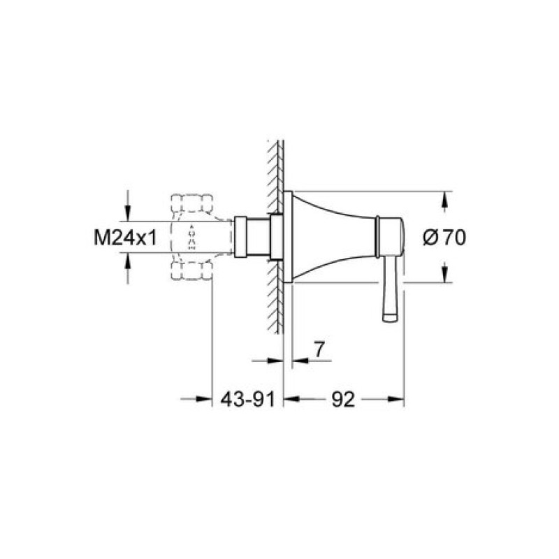 Схема накладной панели скрытой вентильной головки Grohe Grandera (19944000)
