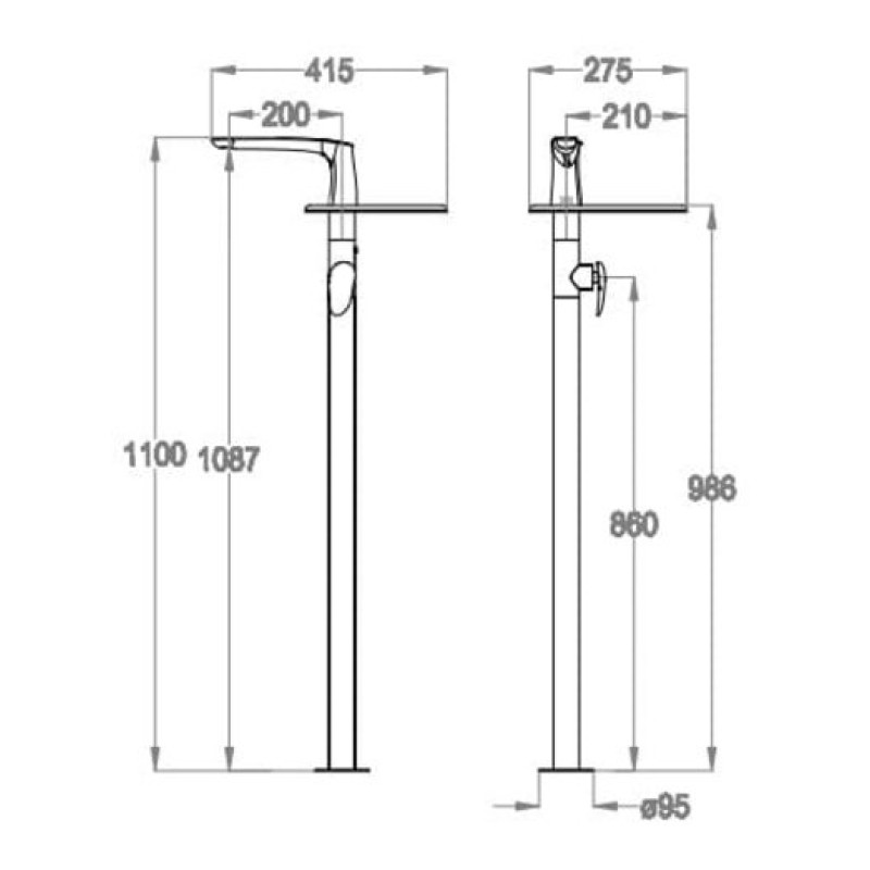 Описание напольного смесителя для раковины Fir Synergy Open 93 (93.1300.8.10.00)