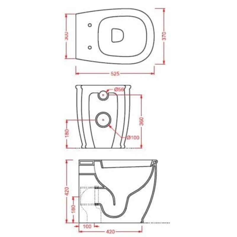 Описание напольного унитаза Artceram Azuley (AZV002 01; 00) размер 360x525х420 мм вес 26 кг цвет - белый глянцевый материал - керамика напольный монтаж вертикальный выпуск Схема с размерами напольного унитаза Artceram...