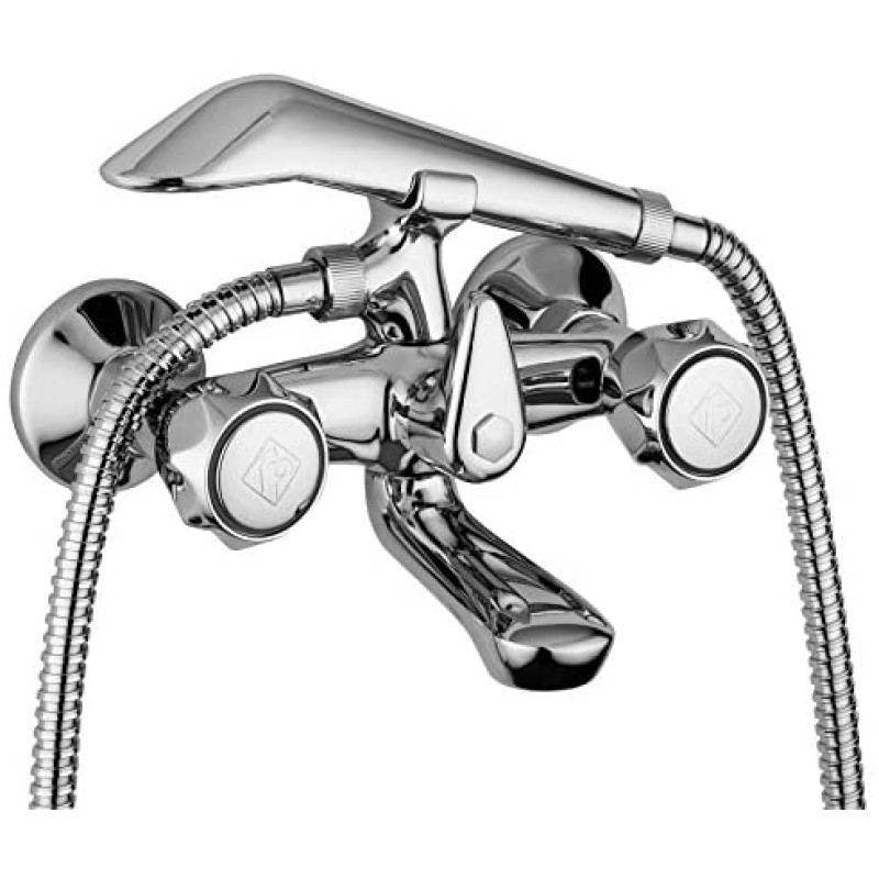 двухвентильный настенный cмеситель для ванны с ручным душем шланг 1,5 м с автоматическим переключателем ванна-душ поворотный настенный держатель подключение на 1/2" покрытие - хром