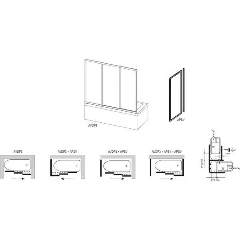 Неподвижная стенка Ravak APSV 75 Для комбинации с душевыми дверьми AVDP3 Подходит для прямоугольных ванн с ровным передним бортом в размерах AVDP3 - 120 / 150 / 160 / 170 / 180 см + APSV - 70 / 75 / 80 см цвета профиля:...