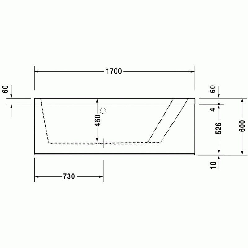 Duravit Paiova ванна асимметричная 170 см, с рамой для панели для ванн, угол справа. Характеристики ванны:Ширина130 смГлубина46 смДлина170 смОбъем235 лВес55 кгМатериал: санитарный акрил