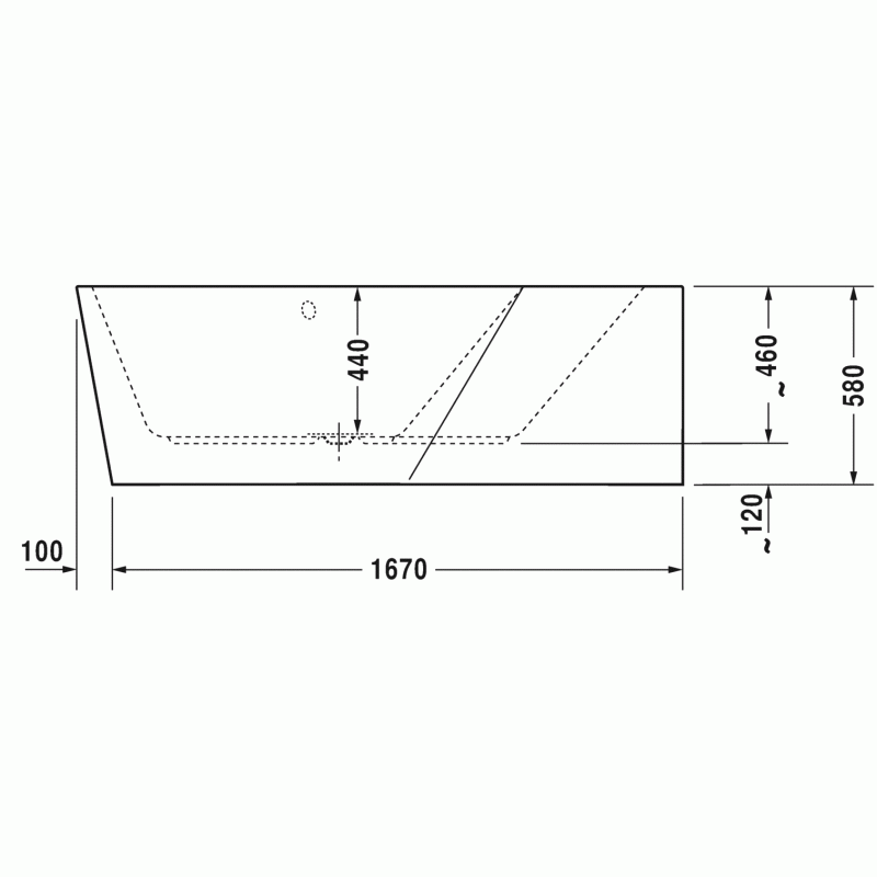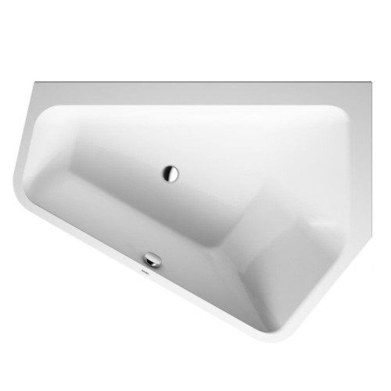 Duravit Paiova ванна асимметричная 177 см, с бесшовной акриловой панелью и опорной рамой, с двумя наклонами для спины, угол справа.