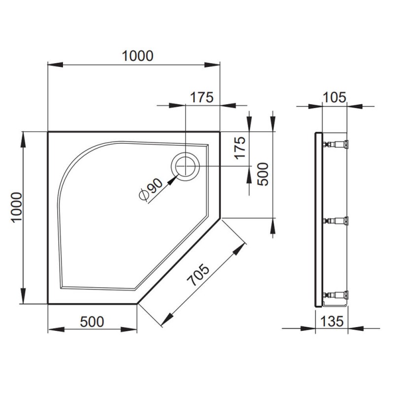 Душовий піддон Devit Universal FTR4210 100х100х13,5 см п'ятикутний з ніжками, панелю, сифоном — характеристики та опис