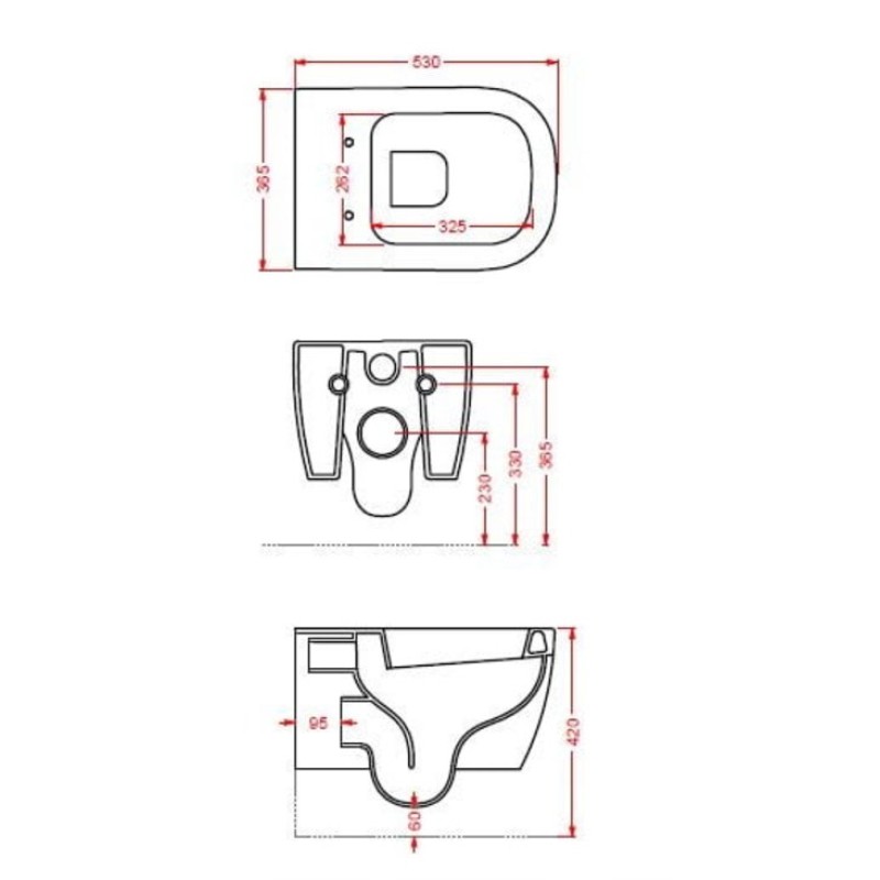 Описание подвесного унитаза Artceram Faster (FSV001 03; 00) размер 365x530х420 мм вес 23 кг цвет - черный глянцевый материал - керамика подвесной монтаж горизонтальный выпуск Схема с размерами подвесного унитаза Artce...